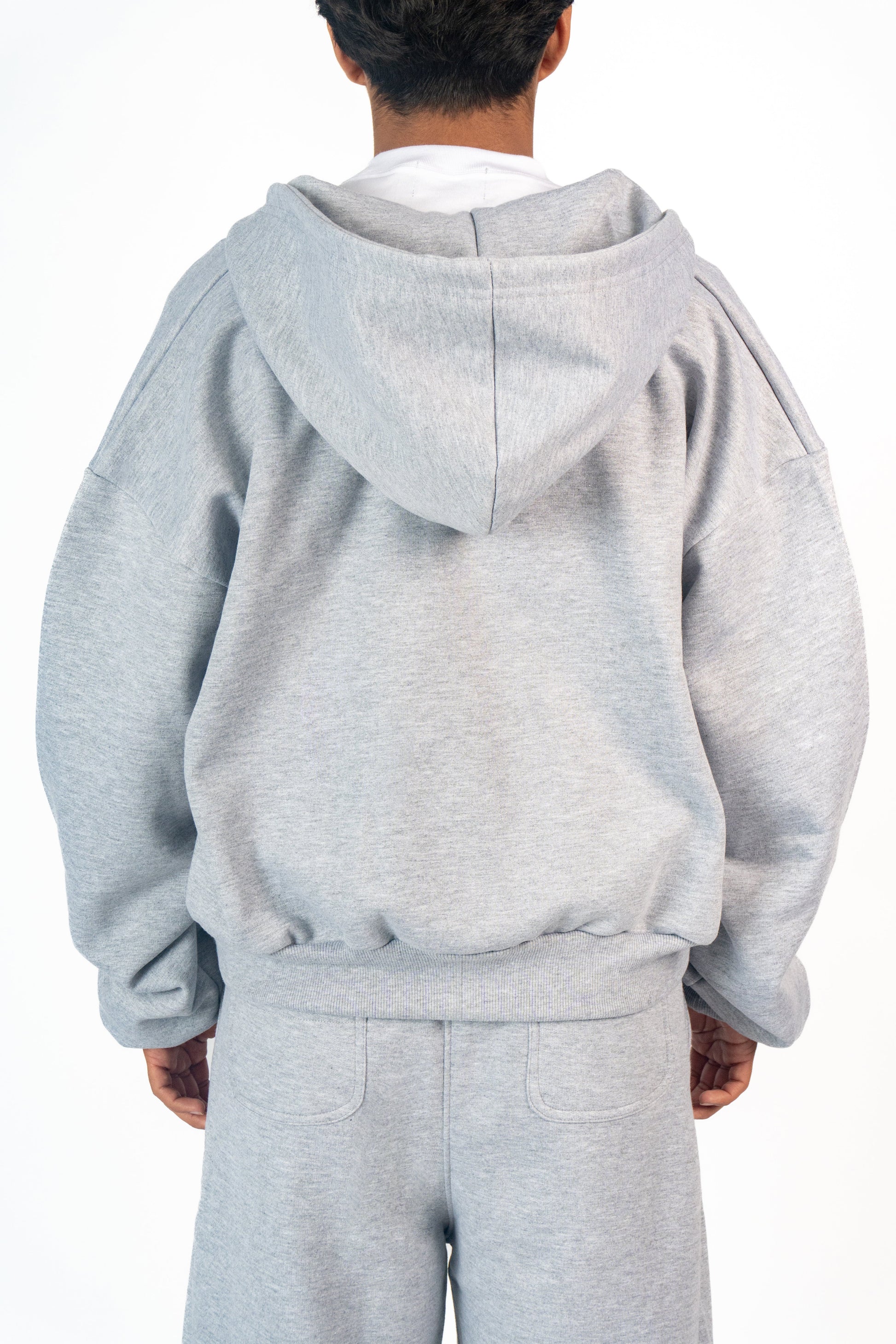 Esta Zip Hoodie, parte de nuestra primera colección, cuenta con un corte cuadrado detalladamente elaborado.